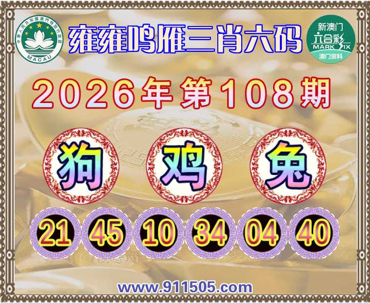 108期:『雍雍鸣雁』 👑三肖六码👑【鸡兔】开:狗45