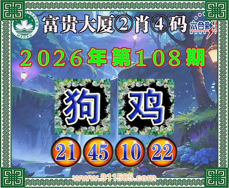 108期:【富贵大厦】 👛②肖④码👛【鸡】【21.45.10.22】开:狗45